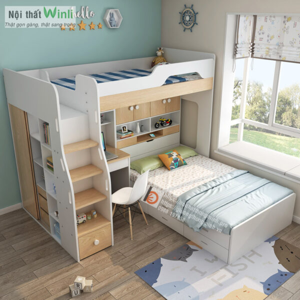 Tham khảo thêm: Giường tầng thông minh có bàn học, cầu thang hộp để đồ