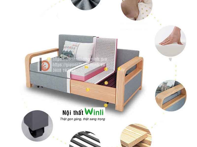 Sofa giường đơn thông minh 1m2 gỗ tự nhiên