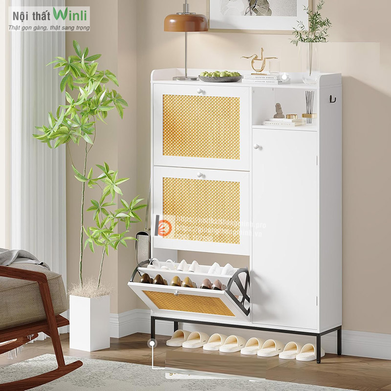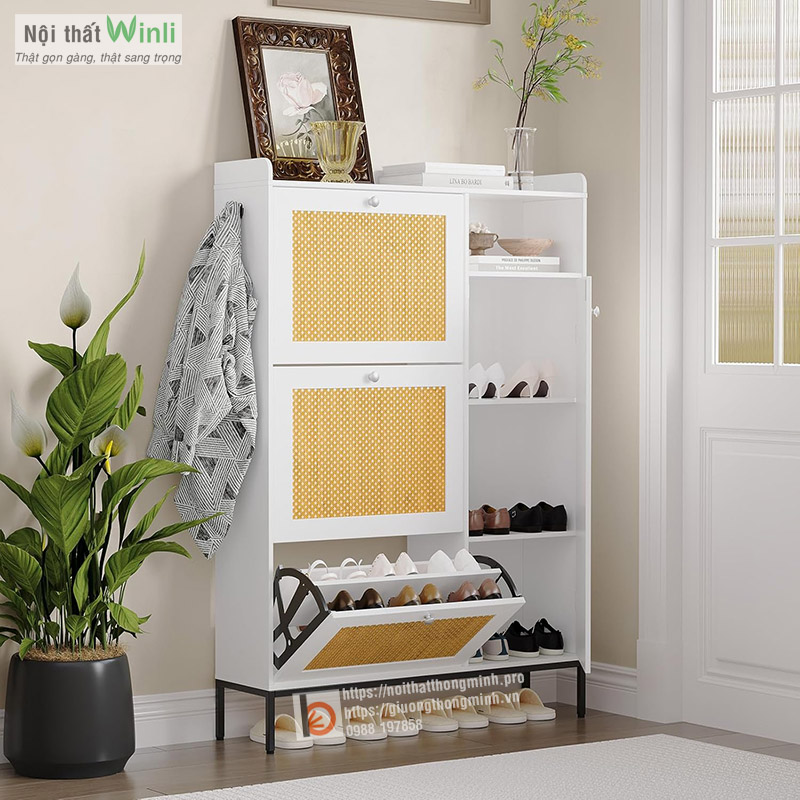 Ai thích nội thất màu trắng thì không nên bỏ qua chiếc tủ giày thông minh 3 tầng màu trắng có ngăn cao để boot dưới đây của Nội thất Winli. Thiết kế hiện đại, sang trọng và đặc biệt có sức chứa khá lớn.