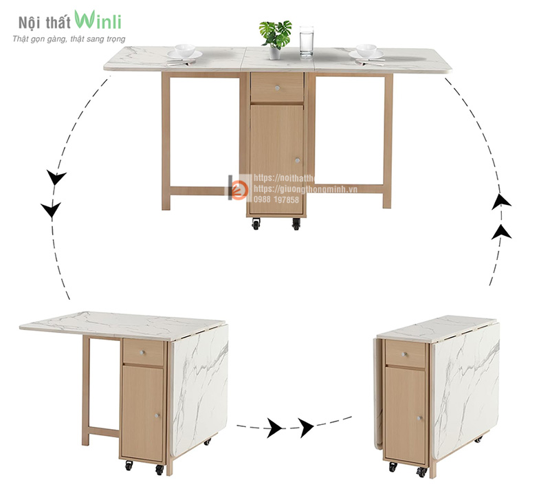 Xem thêm: Bàn ăn thông minh gấp gọn màu trắng giả vân đá cực sang