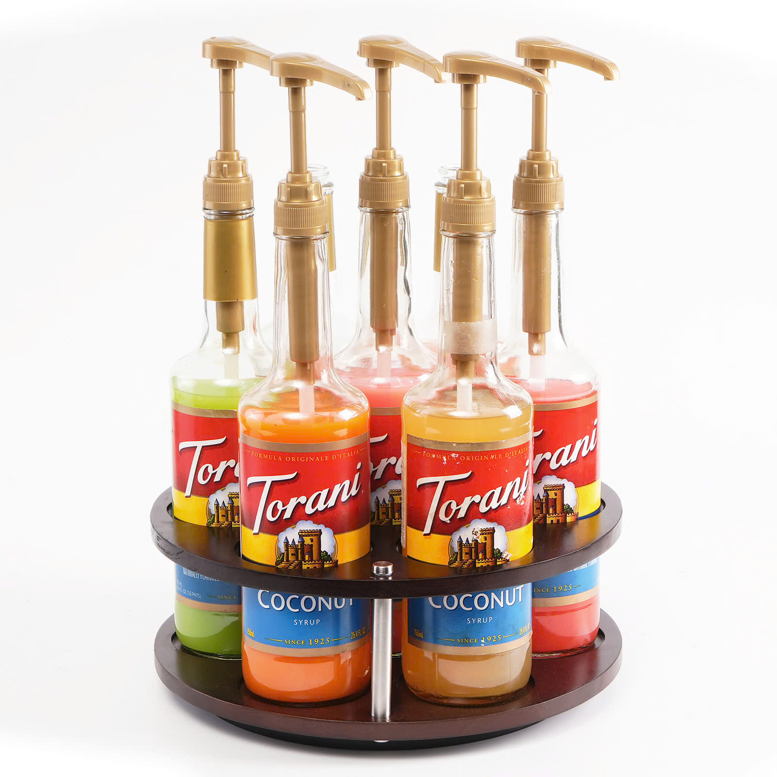 Kệ để chai siro xoay 360 thông minh thường dùng cho quán cafe, quán trà sữa đựng chai siro đem đến sự gọn gàng và tiện lợi cho người sử dụng. Thiết kế 2 tầng được chia thành các lỗ riêng biệt vừa giúp các chai lọ không bị va đập vào nhau vừa giúp người dùng dễ dàng phân biệt các vị.