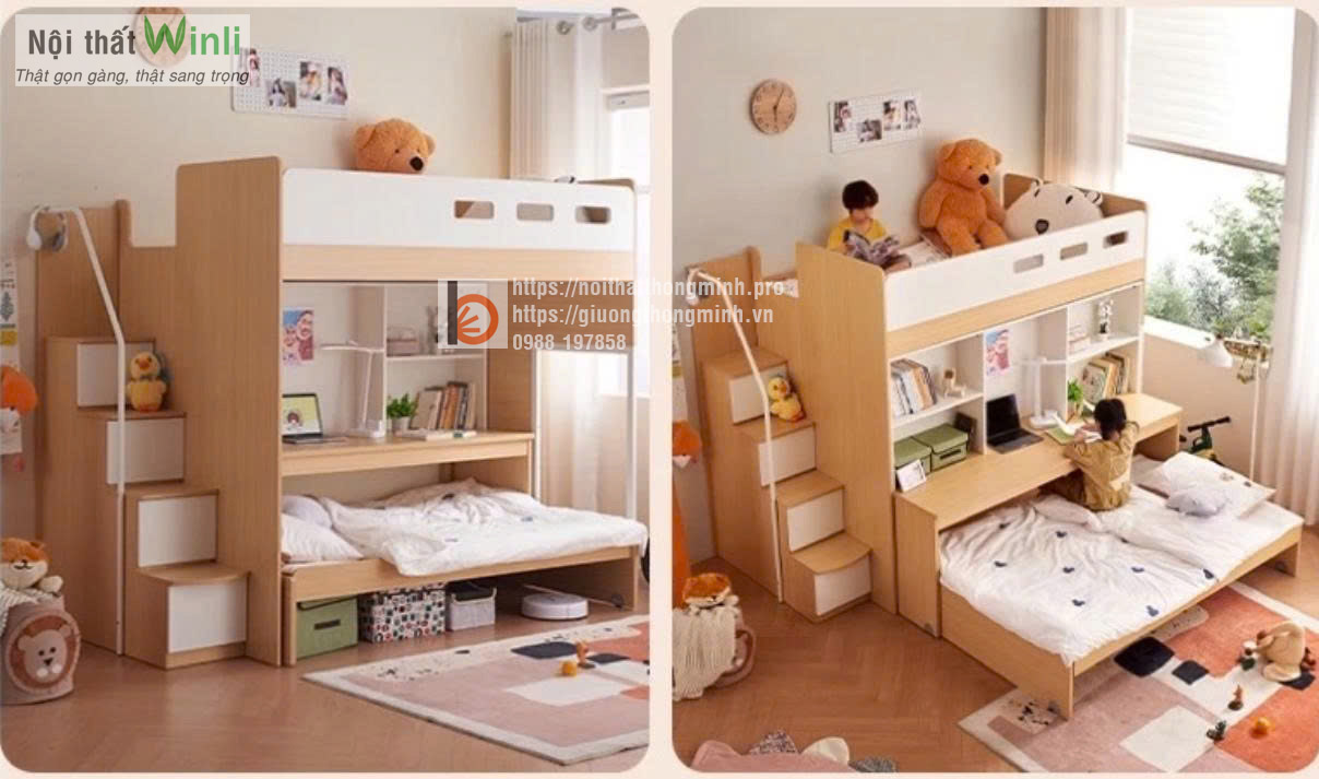 Giường tầng thông minh 5 trong 1 hiện đại